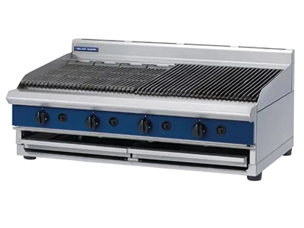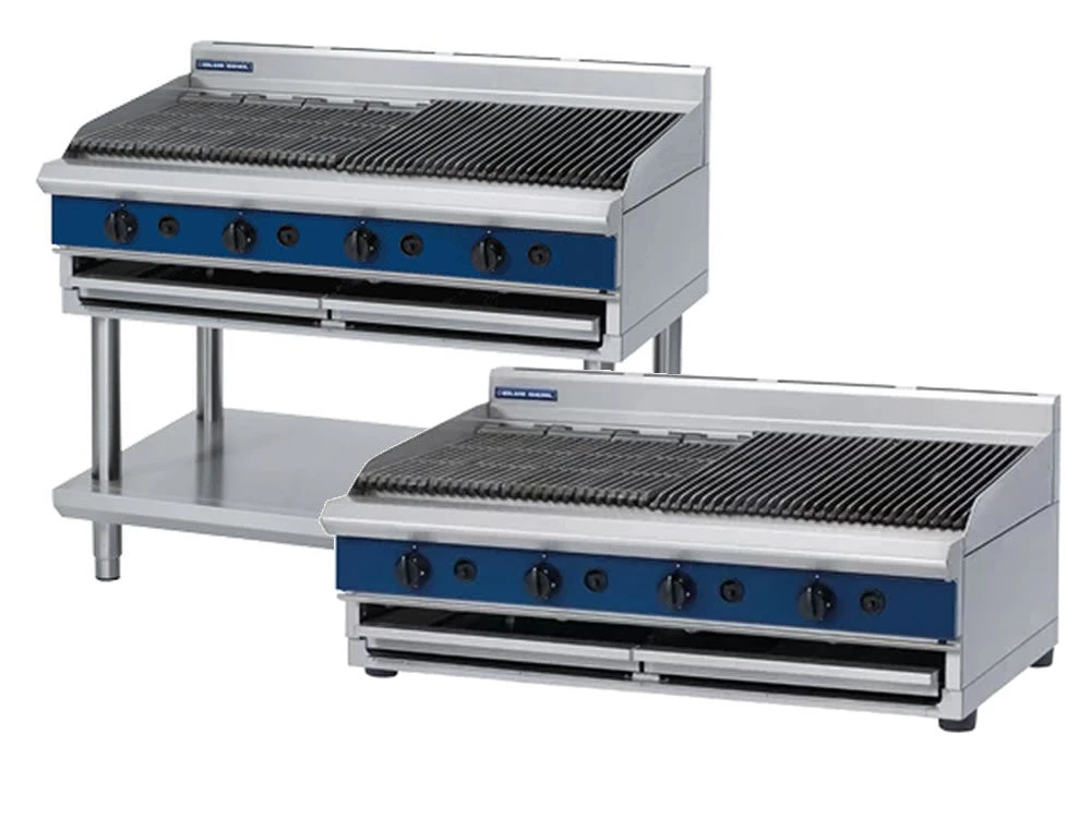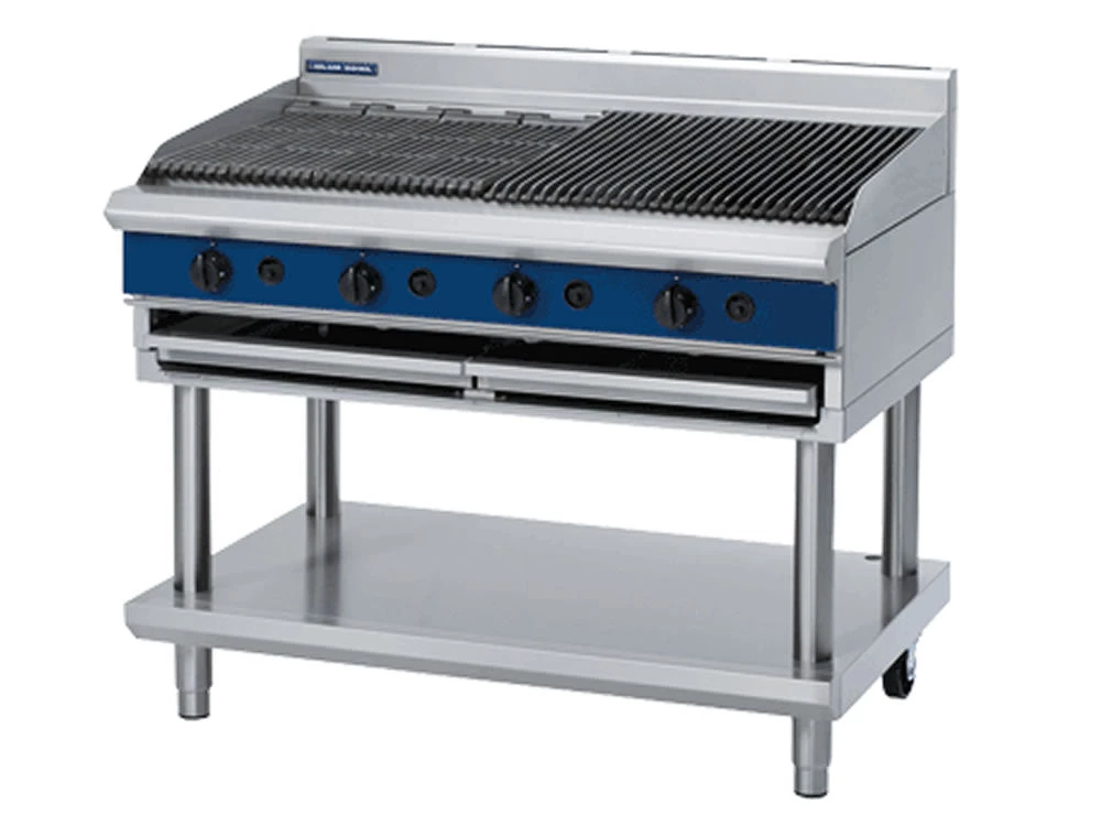 Heavy duty 1200mm stand or bench mounted gas chargrill with fully stainless steel 39.5kW burners and lift out parts for easy cleaning access.