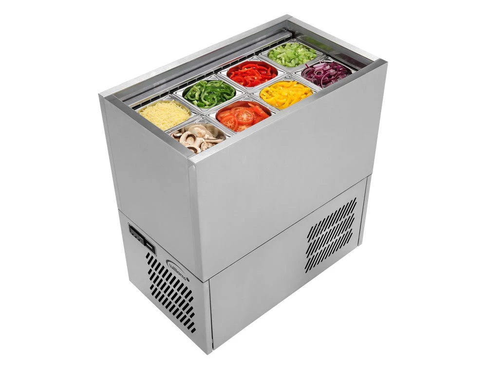 Unique air flow design with protective 1C air curtain ensures food temperature in pans is maintained at between 1 to 4C, when the cutting board / worktop is in place